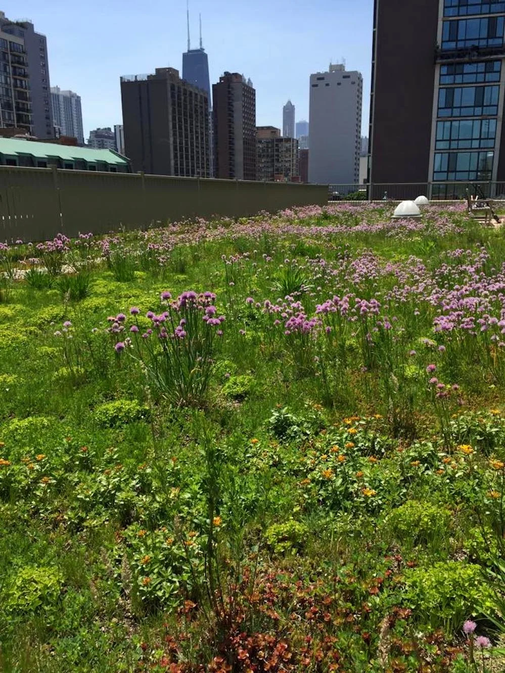 Latin middle was a green roof in failing health when Ecogardens pulled it off of life support and nursed it back to glory. The roof couldn’t support much weight, so we had to use a minimum of soil, meaning we relied heavily on fabric to supplement the moisture needs of plants.